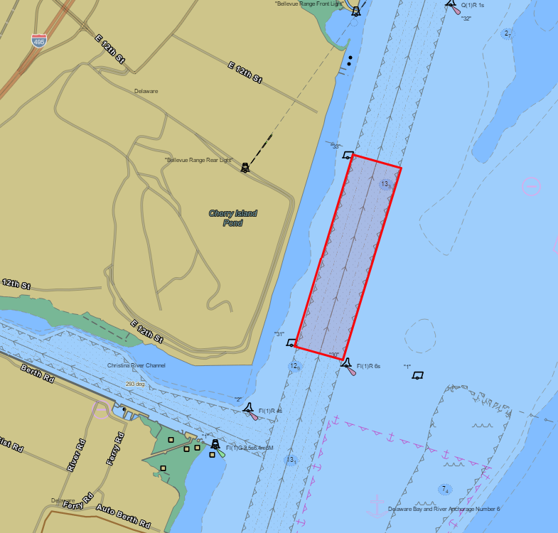 Mariners are advised that a portion of Cherry Island Range, in the Delaware River, between Delaware River Buoy 31 (Light List Number 3025) and Delaware River Buoy 33 (Light List Number 3035), will be closed to vessel traffic on March 7, 2026, from 10:15 a.m. to 12:15 p.m., due to the removal of damaged submerged dredge pipeline in the channel. The Dredge Charleston can be contacted via VHF radio channels 5 and 13 or via phone at (757) 508-2326. Mariners are reminded to heed the direction of the on-scene vessels and transit the area with caution.